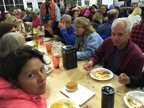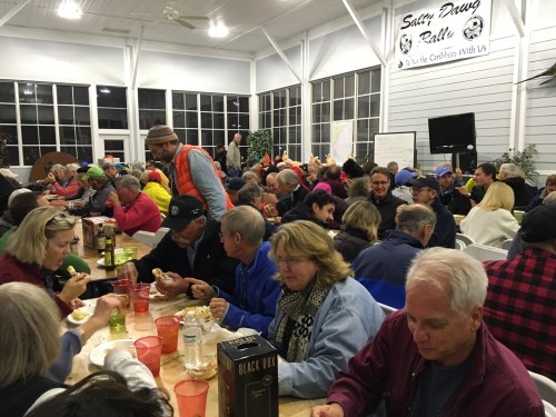 That night we joined a happy hour with Salty Dawg sailors where I tried a concoction which, I understand, mixed rum, beer, and ginger. Unforgettable. Never again. Natalia and I were chatting with the captain and crew of Cayuga, a Valiant 40 that had also come down from Whitehall marina and was headed to the BVI. They left a few days before Carla and I did, and I had been looking forward to meeting them in Hampton. They were disappointed with the forecast and the news that they would have to stay a couple more days — after 5 days in Hampton they just wanted to go. Eventually Richard and Carla reappeared, not clear from where, and we joined the Salty Dawg dinner; delicious pulled pork that, unfortunately, was eaten without wine as the only drink available was the rum mix. As soon as we finished our dishes we went back to the boat to continue the soiree with proper drinks. I fixed G&Ts for Richard and I, and Natalia uncorked a bottle of wine. We stayed there for a long time under the dim light of the cabin.