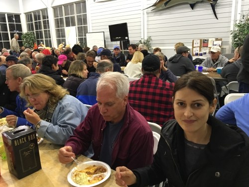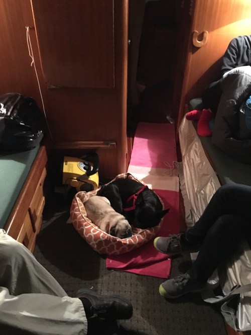 I started to feel better when I saw Natalia driving her black mini into the marina and, shortly after, the dogs jumping out of the car and running towards me. We unloaded Richard’s gear, a cooler with all the food he had cooked, nautical almanacs and a couple of other items I had forgotten at home. The afternoon was cold and gray and rain was coming down, albeit with some hesitation. So we rushed to store things and then went for lunch at the Marina’s restaurant.