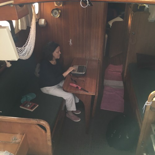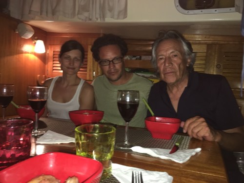 We arrived to Old Bahama Bay marina at 11am and dropped the bags in the reception. A golf cart drove us to the T head were Antares was docked. The girls run to the boat calling their grandparents, “abuela, abuelo.” My parents surfaced from the cabin into the cockpit and climbed the ladder to the dock. They looked radiant standing there with their black and white hairs ruffled by the wind. They had arrived from Ecuador the previous night at low tide and the docks were in the dark. They had with them a small flash light though, and apparently had no problem finding the boat, going down the ladder, retrieving the key to open the companion way which I had hidden in a locker, and then finding their way in the cabin. They had had a good night of sleep and in the morning, not knowing yet how to operate the stove, went for breakfast at one of the restaurants in the marina.