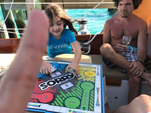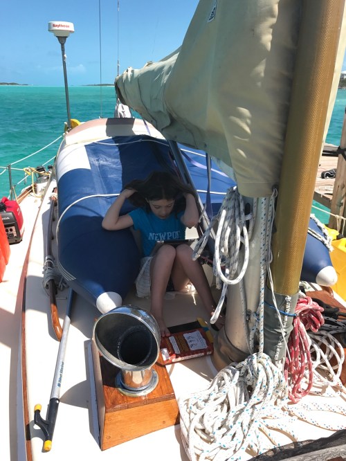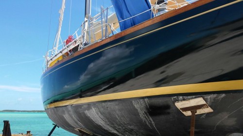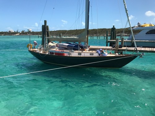 Last time I was there during spring break with my daughter Sofia and son Juan David (Marina decided not to come at the last minute). We spent most of the time at anchor in front of Black Rock in Stoking Island. A mostly uneventful and enjoyable trip except that customs confiscated my drone again, we didn’t have a reliable dingy (very annoying), Antares’ hull was damaged at the marina, and I finally managed to fool a line in the propeller. The most depressing part was Antares’ hull that had just been painted. She was left at the marina, facing norht, with fenders on the port side and the wind blowing from the South. No problem. Unfortunately, overnight the wind veered to the east — the usual direction — and increased in intensity. In those situations I usually run two lines on the port side, one at the bow and one at the stern, to the piles on the other side of the dock so that Antares doesn’t “touch wood.” They didn’t and she spent the night rubbing her hull against the dock. Even worse, when they saw the problem in the morning they didn’t really fix it (by adding the lines) so when we arrived to the marina Antares was again in close contact with the dock and the gel coat was badly damaged in several places. To his credit Dunca, the manager of the boat yard, offered to take care of the repairs at no cost and, eventually, did it.