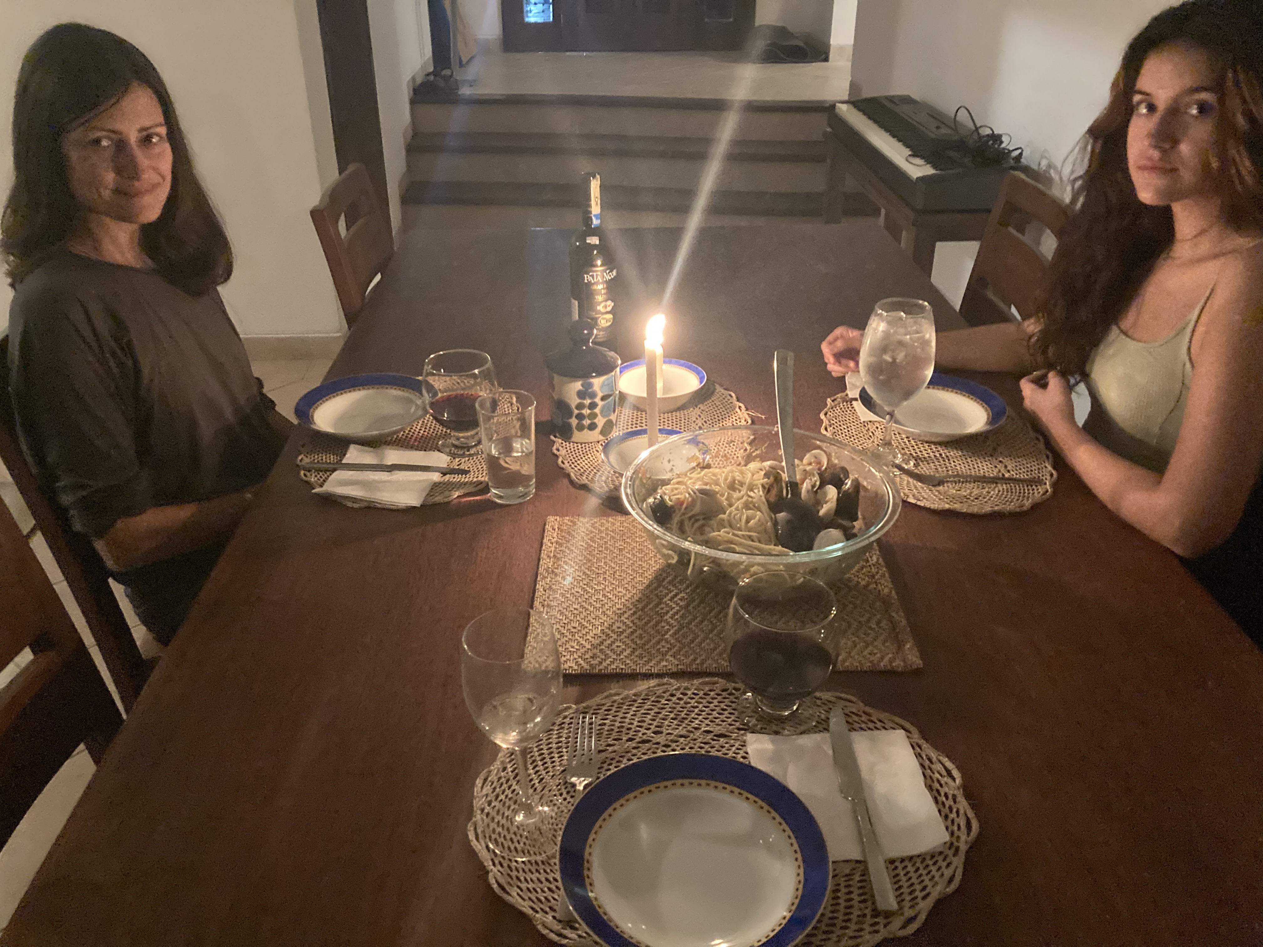 Natalia and Marina have been spending several hours a day in front of their computers; one working for a living the other attending virtual classes. I have been the connection to the outside world provisioning and cooking. So far the most successful dish was the pasta with bongole I prepared the other night. Later today I will cook the traditional “arroz con camarón” (rice with shrimps). I already did the shopping and have all ingredients.