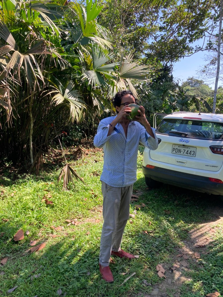 I have also taken some time to deal with finca related stuff. Over the last year the guys who work there have been planting cacao threes (as you can see in the pictures they are still small) and cultivating what the old threes produce. It is “cacao fino de aroma” (fine aromatic cacao) that we use to produce high-quality chocolate. We don’t produce much, just a few kilos, for now the goal has been to test the potential of the value chain. The person in charge of the preparation of the chocolate is a German lady who has been living in Mompiche-Ecuador for close to 10 years. Her name is Michaela, an autodidact. Through readings, videos, and several courses she has been able to perfection the technique, or I should say the art, and her chocolates are to die for. With the right marketing and production scale, they would have the potential to enter international markets.
