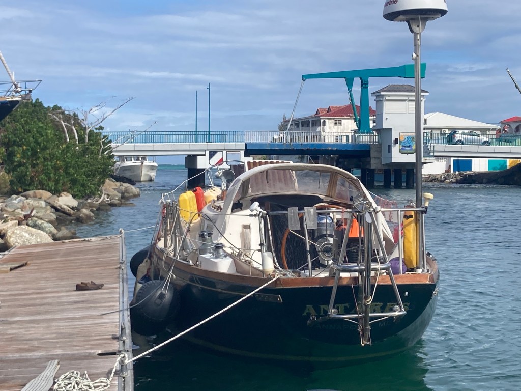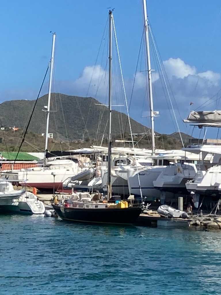 As planned, I landed in St Martin last Wednesday in a rainy afternoon. Antares was on the water when I got to the yard but without her mast. The poor boat was a mess and I knew when I boarded that it would take longer than expected to get her ready for the passage to Grenada. She was dirty; the varnish on the rails was in a lamentable condition; there were pieces of equipment all over the deck; the main cabin was filled with sails, sheets, and the pole; and the head was not working. But she was floating, the bilge was clean, and there were no signs of cockroaches or other insects or rodents. So instead of feeling despair, I felt content; it’s good to be back.