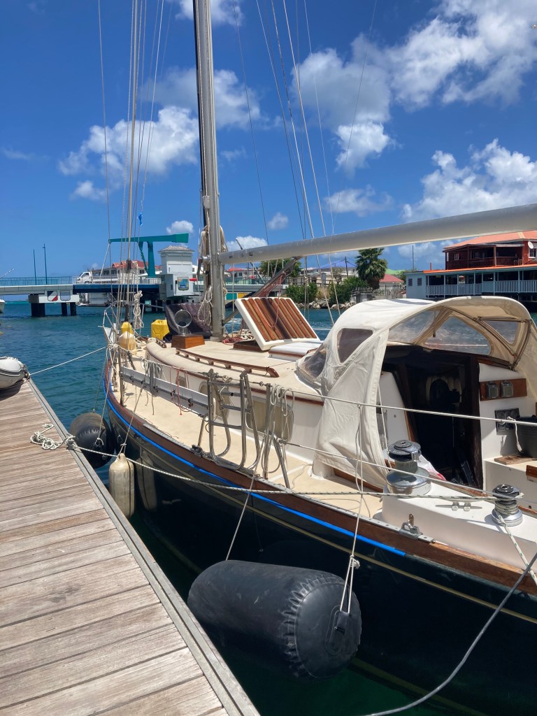 Thursday and Friday I went our for dinner after having my usual G&T. The first night at La Petite Auberge and the second at Tropicana, both located around Marina Royale. Highly recommended. Otherwise, I have spent the days preparing the boat and doing some work. This morning Pierro, the carpenter who works at the yard, and his assistant came to varnish the port rail of the boat. I will take care of the teak around the stern and the starboard rail can wait until I get to Grenada.