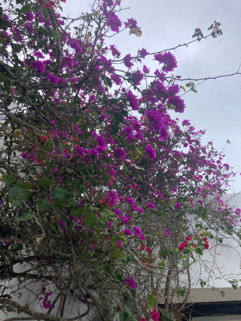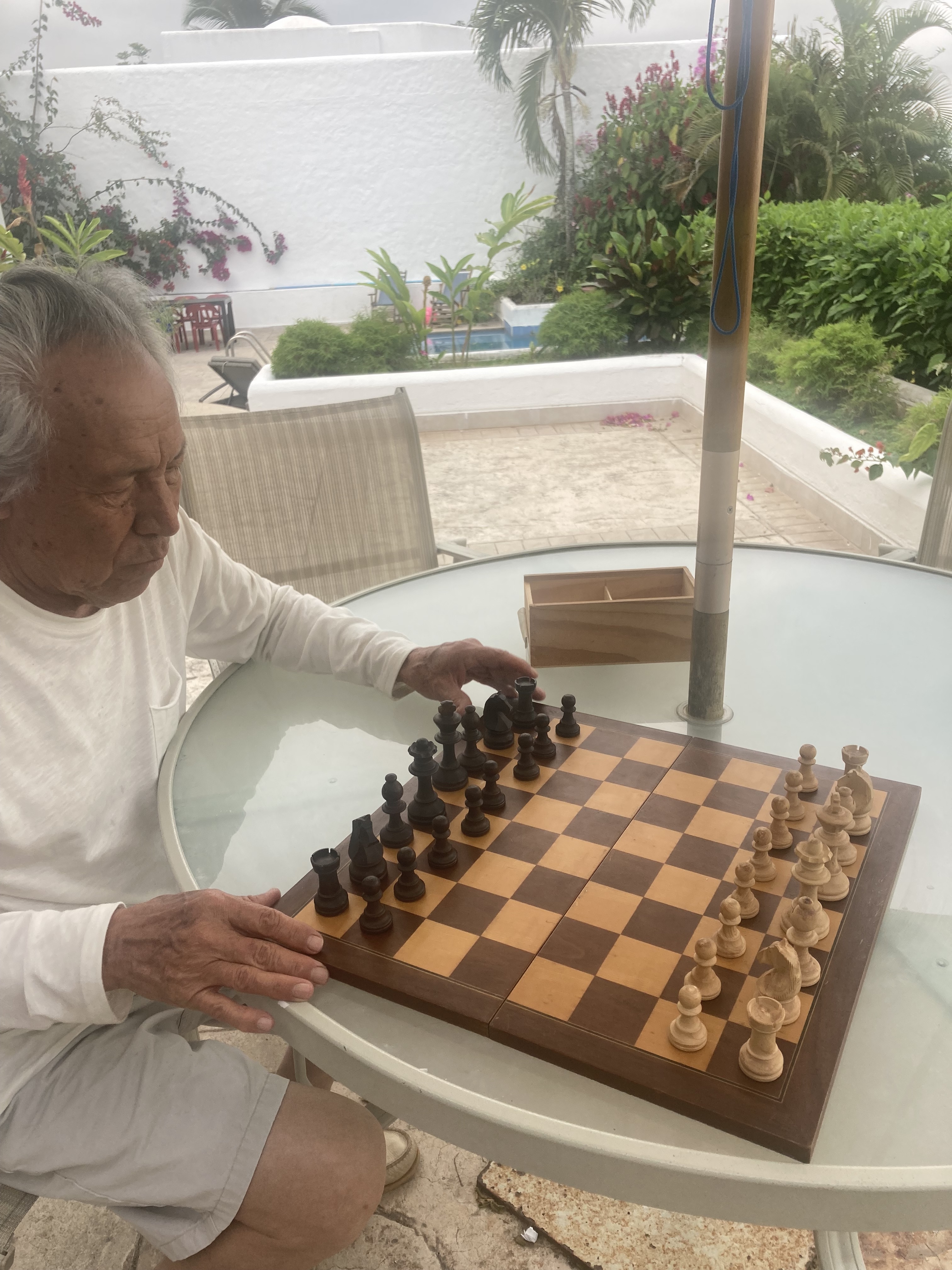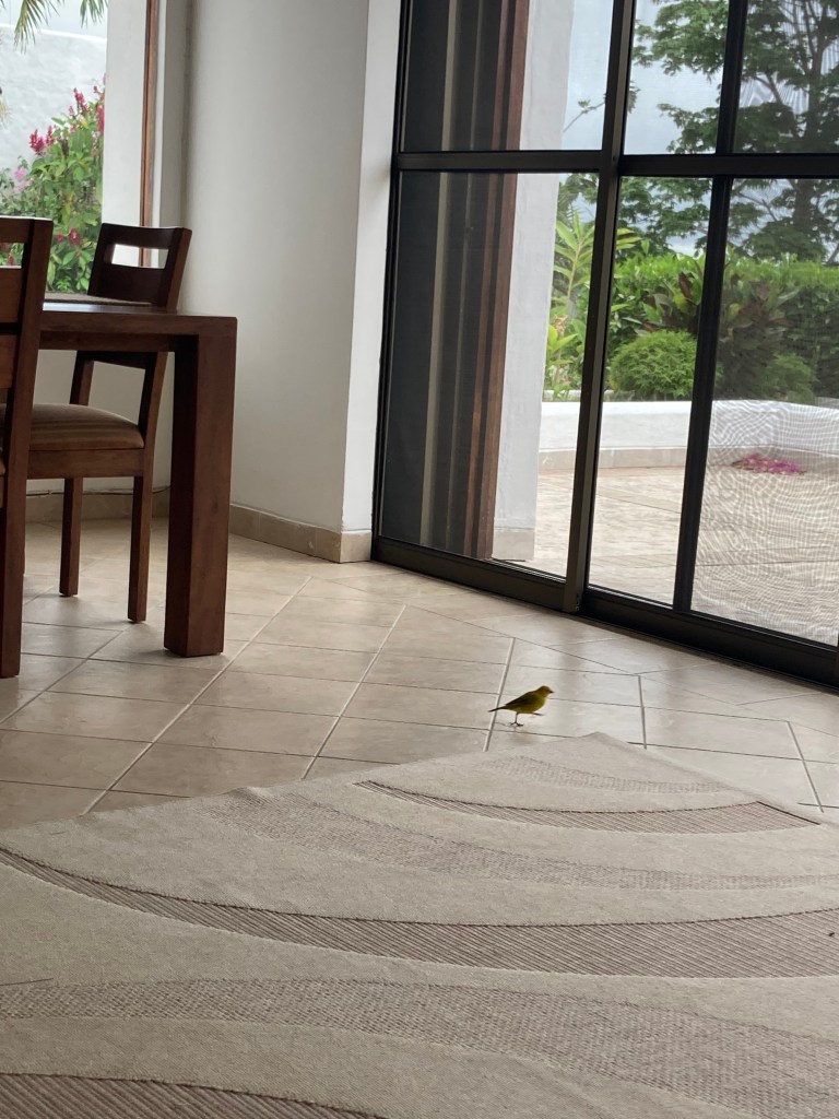 The pictures below are from the last few days in Casa Blanca. The gentleman playing chess is my father (he won that day). The lady by his side is my mother. The little yellow bird comes every morning with his partner. Those lobsters became a salad one day. The picture of the bougainvillea was taken from the hammock. The last pic was our goodby dinner. I miss the place…