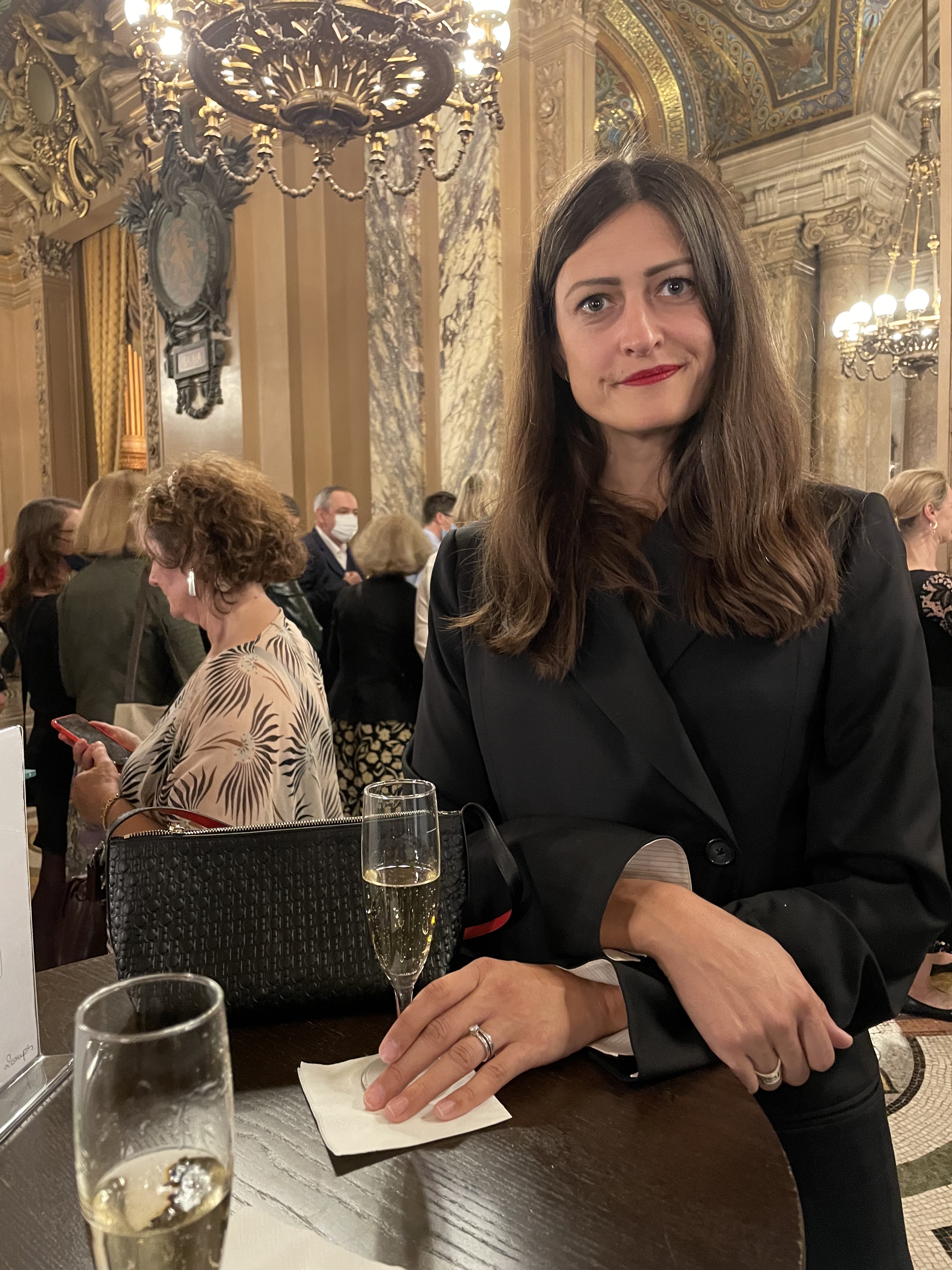 This morning over coffee I read a review of the opéra by Jules Cavalié. He writes that Thomas Hengelbrock, the conductor, was in charge of a play rather than an opéra. When the gods were singing from the upper boxes (wearing masks), he was able to identify several instances when the singers missed the right notes; not good although I didn’t notice. But he had good things to say about Julien Behr (Pylade) and Tara Erraugh (Iphigénie). I didn’t know her. She is from Ireland and it was her first time in this role and her first performance at the Opéra Garnier. Both Natalia and I enjoyed the play/opera. Afterwards we walked across the street to Café de la Paix where we sat at the bar and ordered drinks — Natalia a Cosmopolitan (had forgotten those existed) and myself a gin. Eventually, at around 10:30pm, we got a table and had dinner with a bottle fo St. Sthèphe.