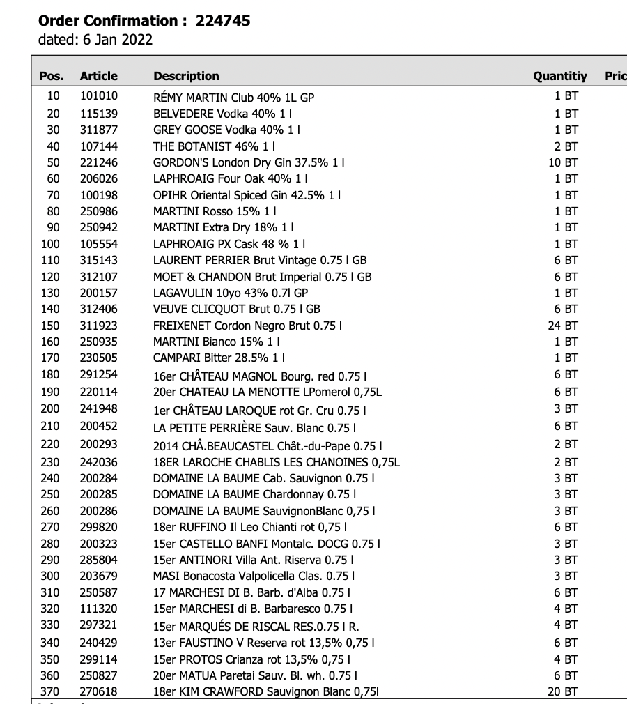 The most important thing we did was to order ethanol duty free. Thailand has an excise tax on ethanol of 60%. In DC or Beirut I can buy a bottle of gin Gordons for less than USD 15, here it costs USD 25. Natalia through her work can get ethanol tax-free but you can only place orders every three months, so one has to plan in advance. Here is our order: