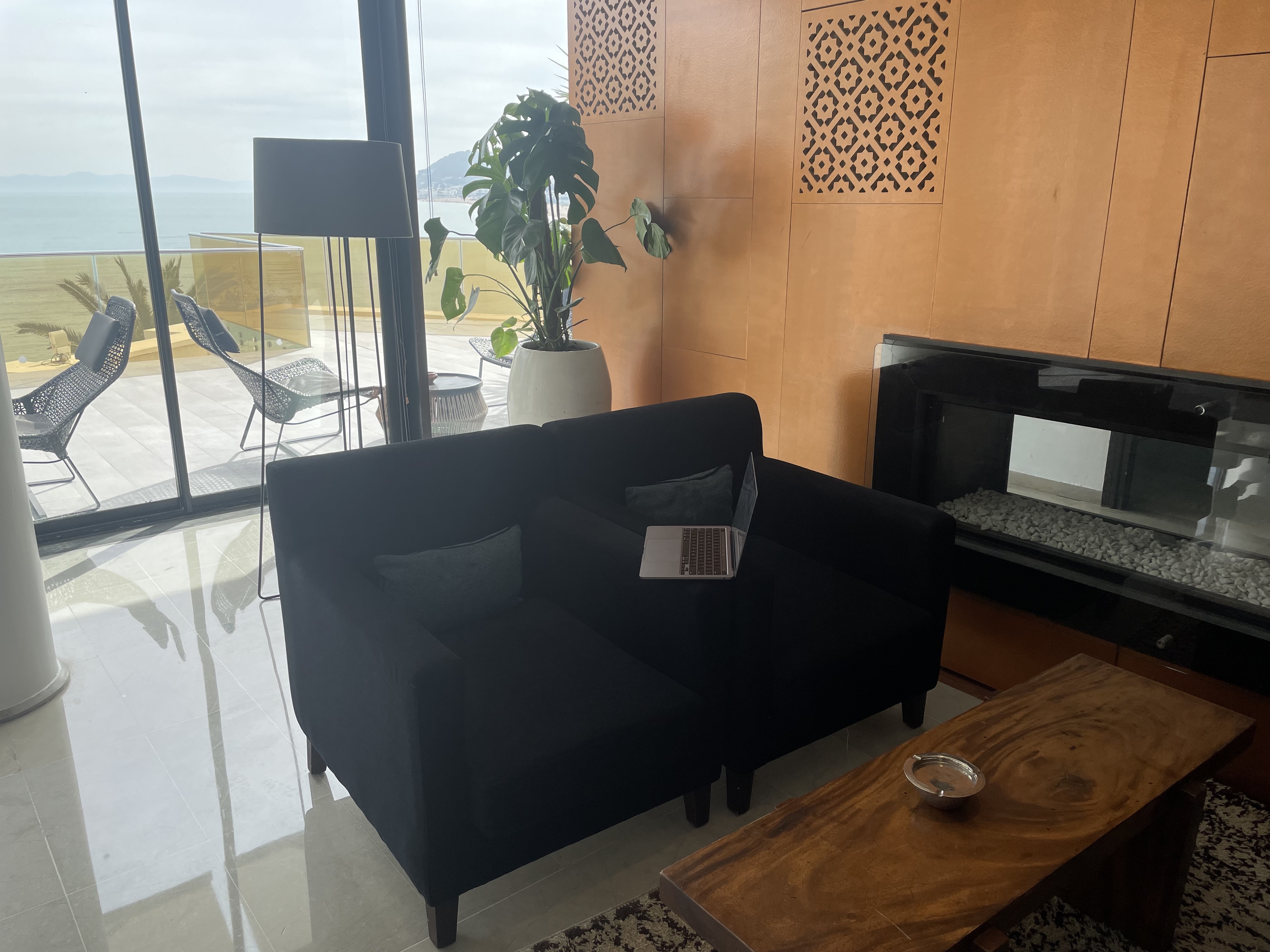 I realize I haven’t taken many pictures while in Tunis. But you can see there my couch, the sea, the sublime lunch, and a glass of wine I had while celebrating St. Valentines day alone in the Tunisian restaurant.