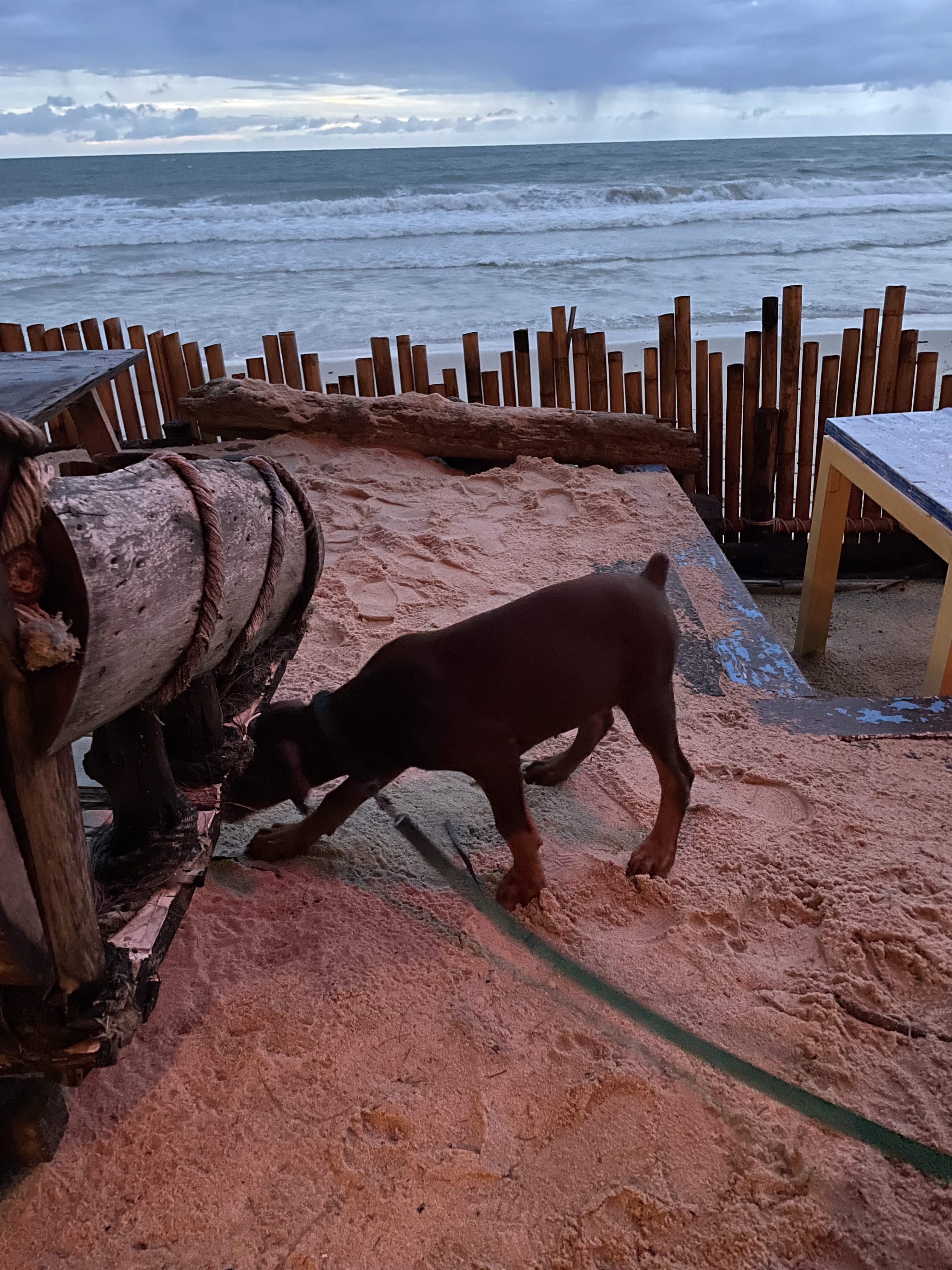 He will keep me busy over the next few weeks but overall, he is doing well – including in terms of socialization. At the beach, in addition to dogs, there are many roosters and hens and although he plays with them, he hasn’t tried to eat one for lunch.