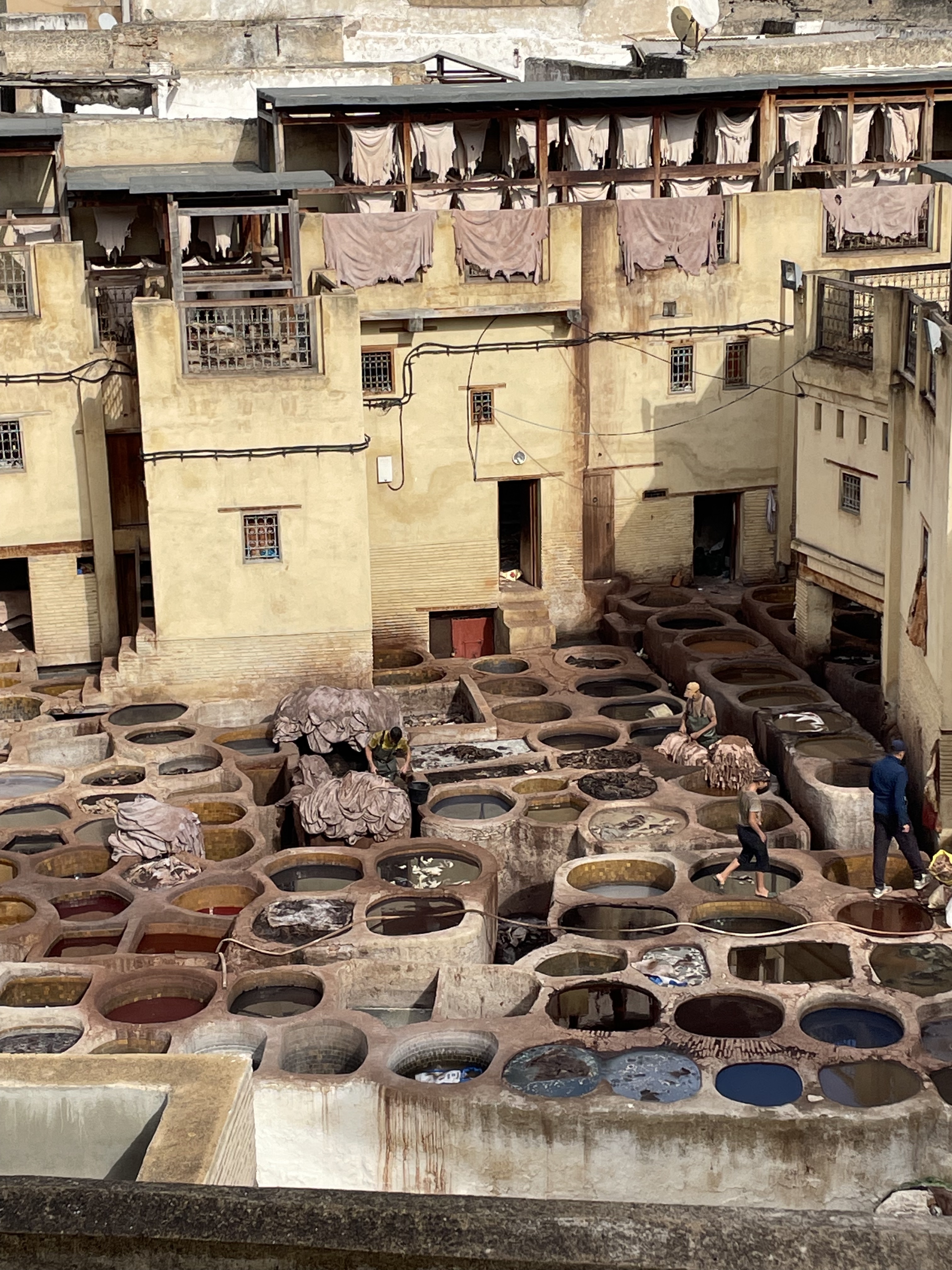 I came to Morocco to work on a project that is trying to find ways to support local industries so that they are able expand their production and create more and higher paying jobs, in a country where over 1/3 of young people are unemployed or employed in subsistence/informal activities. After a few days in Rabat, I drove to Fez in the northeast, the cultural capital of the country. I met with entrepreneurs working in the leather industry, from the production of leather to the manufacturing of leather products. The industry is one of the oldest in Fez and there are still many traditional, informal, entrepreneurs working in the old medina without access to modern technologies/machinery and basic health and safety standards. The production of leather from skins is intensive in the use of nasty chemicals. Workers at the medina are directly exposed to these chemicals which are contained in large round stone vessels (see pic). The stench emanating from the chemical reactions is nauseating. There is also a more modern industry but even there work conditions are dreadful. Every day, they receive cow skins preserved in salt which they buy by the pound. The skins go into large spinning barrels each costing more than BEHEMOTH where they are mixed with chemicals that will remove the residues of fat and hair. From the barrels the skins go through machines that drain the polluted water and smooth the leather to the right thickness (as per the client order), and then back to other spinning barrels to give color to the leather. Because the industry does not meet environmental standards export opportunities are limited and prices are low. At the same time, those manufacturing leather products need to import leather if they want to sell abroad. Because designers are lacking and Moroccan brands aren’t well known, these entrepreneurs produce for large European or American brands. They sell them products for one tenth of the price at which the brands will be sell them in foreign markets. So many missing opportunities for no good reason other than bad, or the lack of off, public policies.