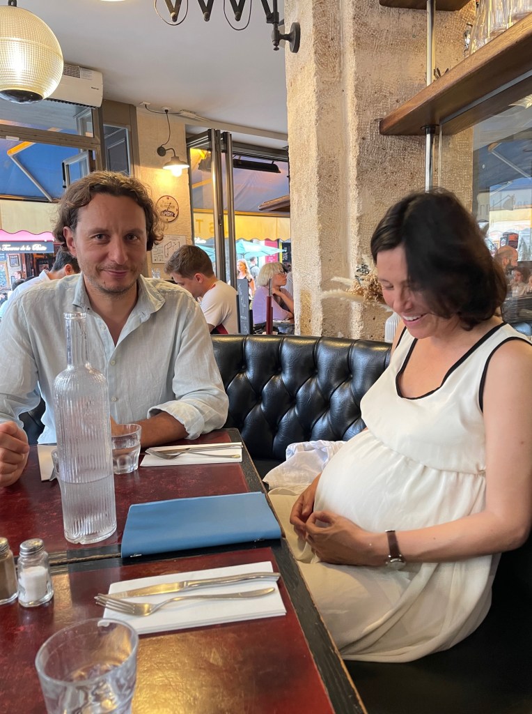 After the expo we joined my sister Carla and husband Alaric for dinner at a restaurant in rue de la Butte-aux Cailles – LES TANNEURS DE LA BUTTE. Lovely. Carla and Alaric live in a little village, Saint Rémy les Chevreuses, 45 minutes from Paris by RER, but they were staying in the city at a friend’s apartment for a few days. Carla is eight months pregnant, her first time, and I hadn’t seen her since June last year. Quite a shock it was. They are expecting a boy and they have chosen a beautiful name: David. I feel honored.