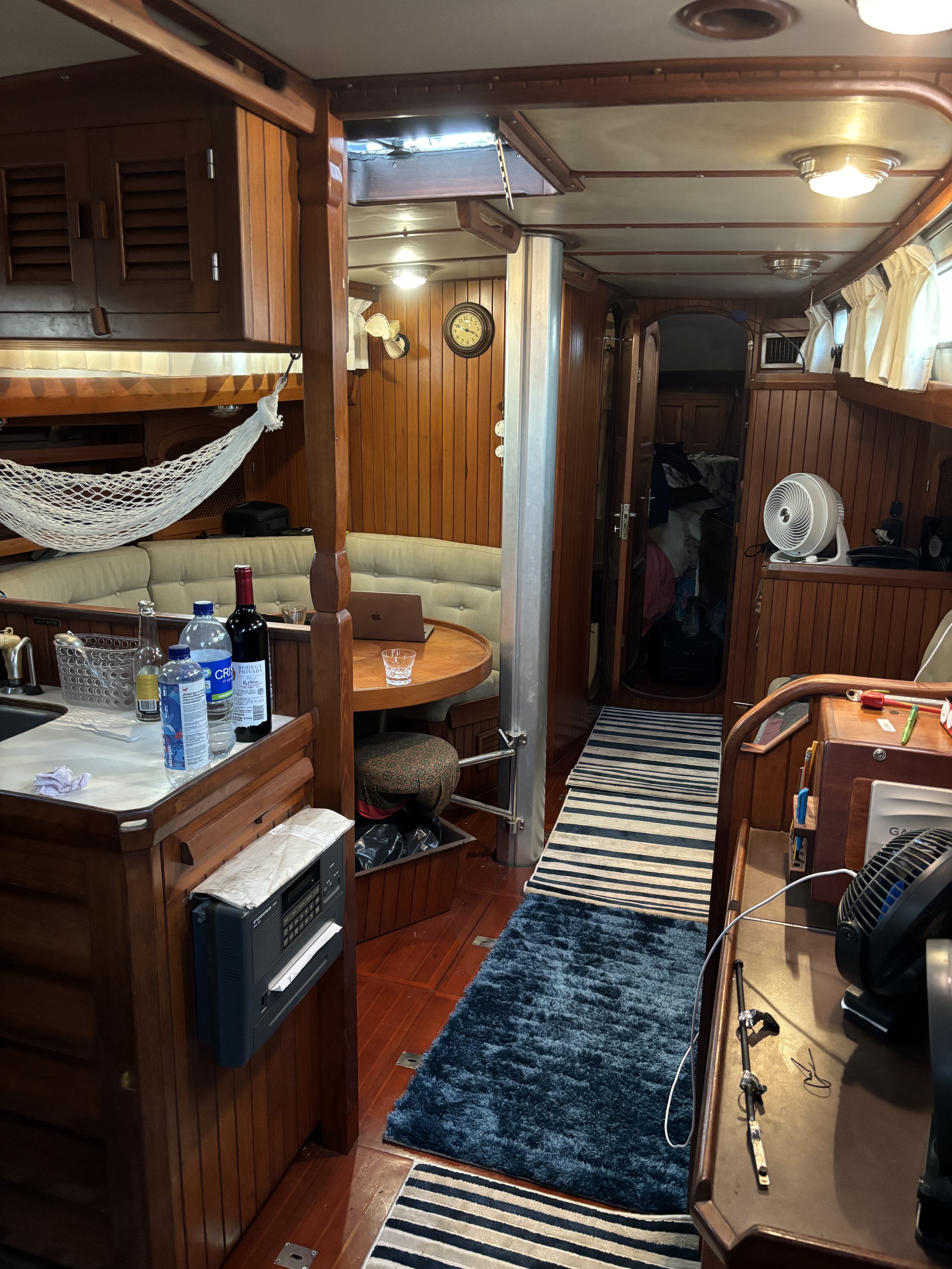 The first thing I did was to setup one of the fans that were inside the duffel bag; a Vornado that can connect to 110 or 220V (the boat is wired for 220). Once the fan was running, I tried to put some order in the main cabin to have a livable space. A couple of hours later the manager of the company that oversaw the repairs of the engine came. Alexander, a soft-spoken man my age, introduced himself and explained why things had taken so long. It was no possible for him to initiate the tests until other components of the “engine system” were ready, like the electric and fuel connections, plus of course the new batteries which had just been installed a couple of days ago. He also told me not to worry, that the engine will work.