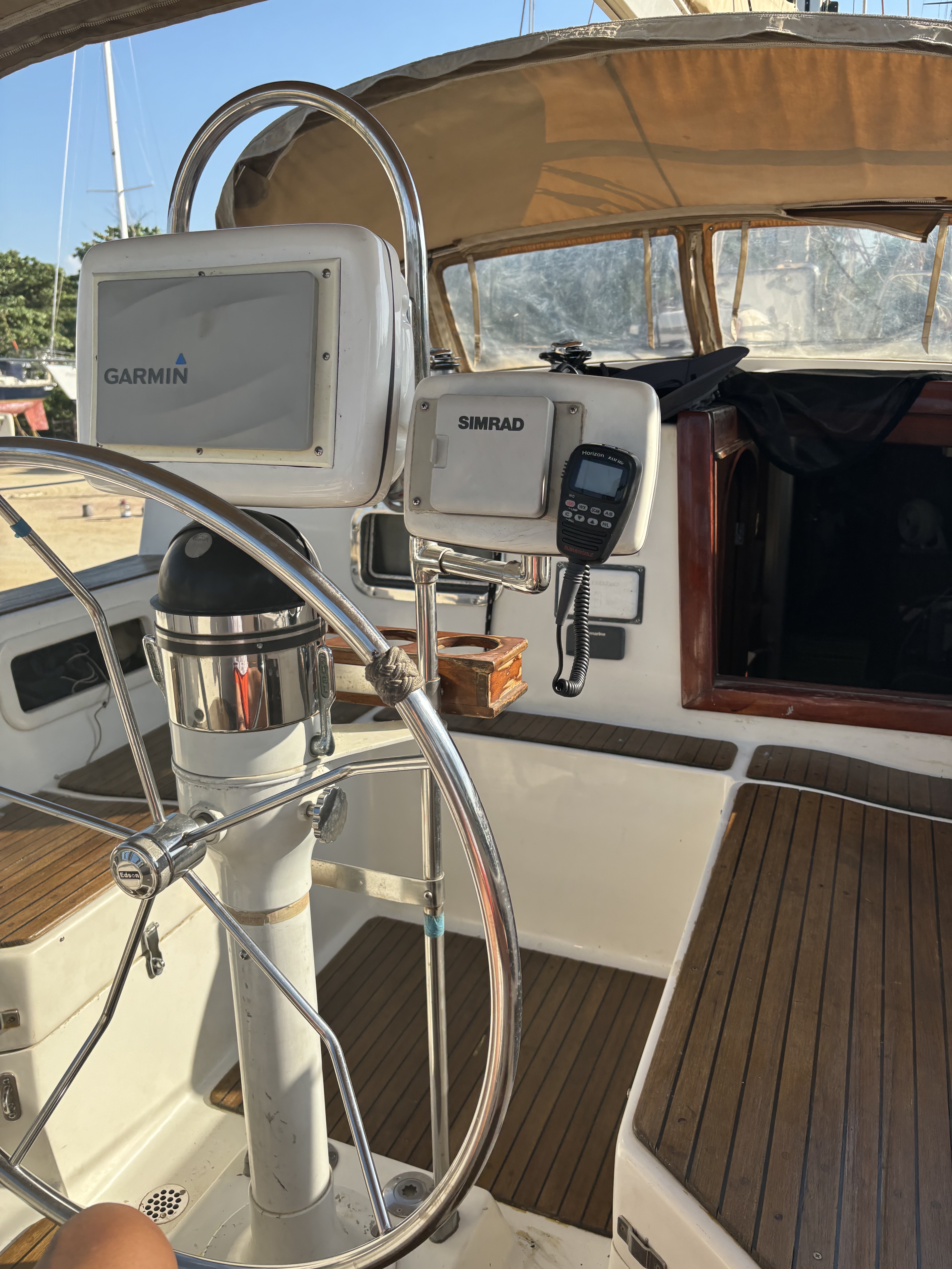 Still at the boat yard under a scorching sun; it’s 90 degrees (32 C) outside. Not sure what is the temperature inside the cabin, but it remains manageable thanks to the Vornado. I may be the only one left here. Today is Little Candles Day or Immaculate Conception Eve, an observed religious holiday in Colombia that marks the start of the Christmas season. Few people came to work at the yard and those who did left after lunch.