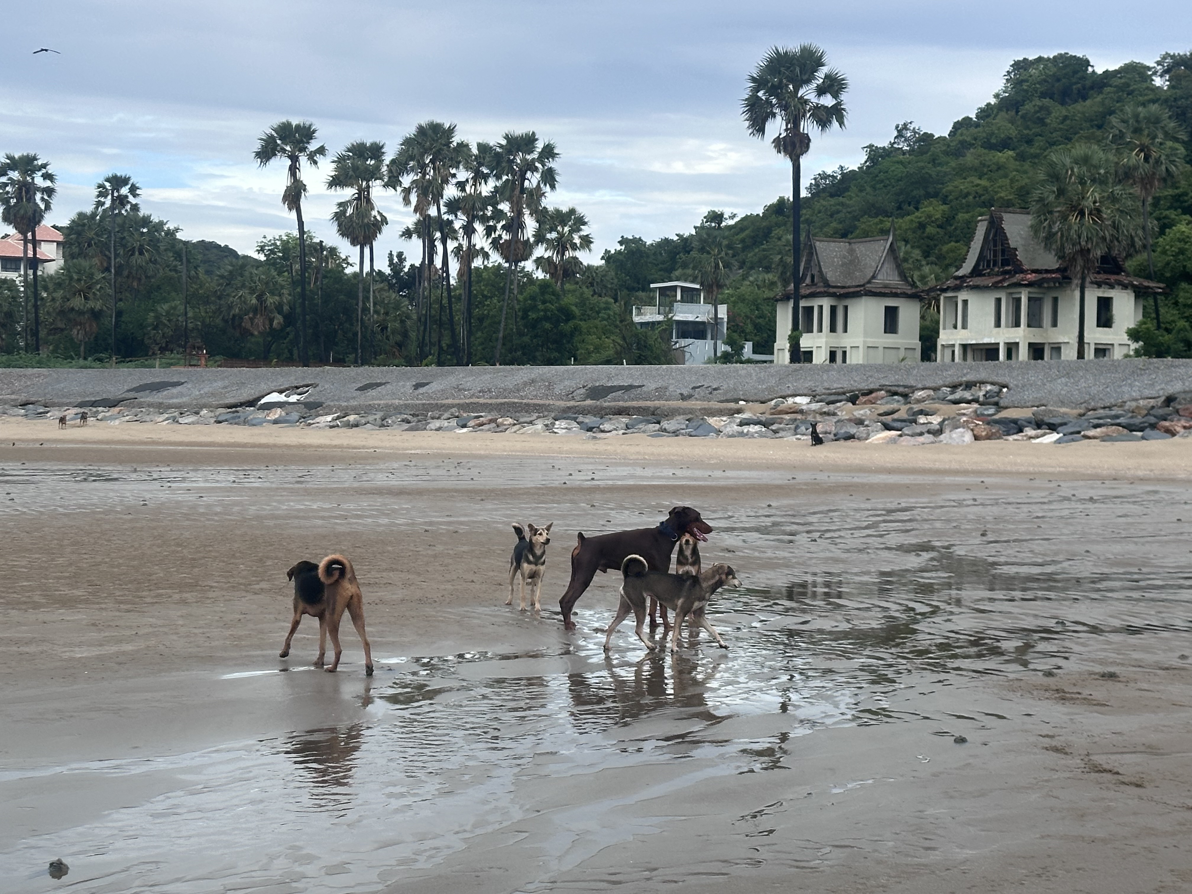 This house we rented, it is a special place, a quiet place far from the chaos and noise of the city. There are only a few other houses around inhabited by reserved and discrete people. You rarely hear a car, a voice, or a lawn mower, just birds, including peacocks, some rain, and trees frolicking in the breeze. Yet, we’re just up road #4, a 15 minutes drive from Hua Hin and a 10 minutes drive from the nearest beach — Sinoi beach.
