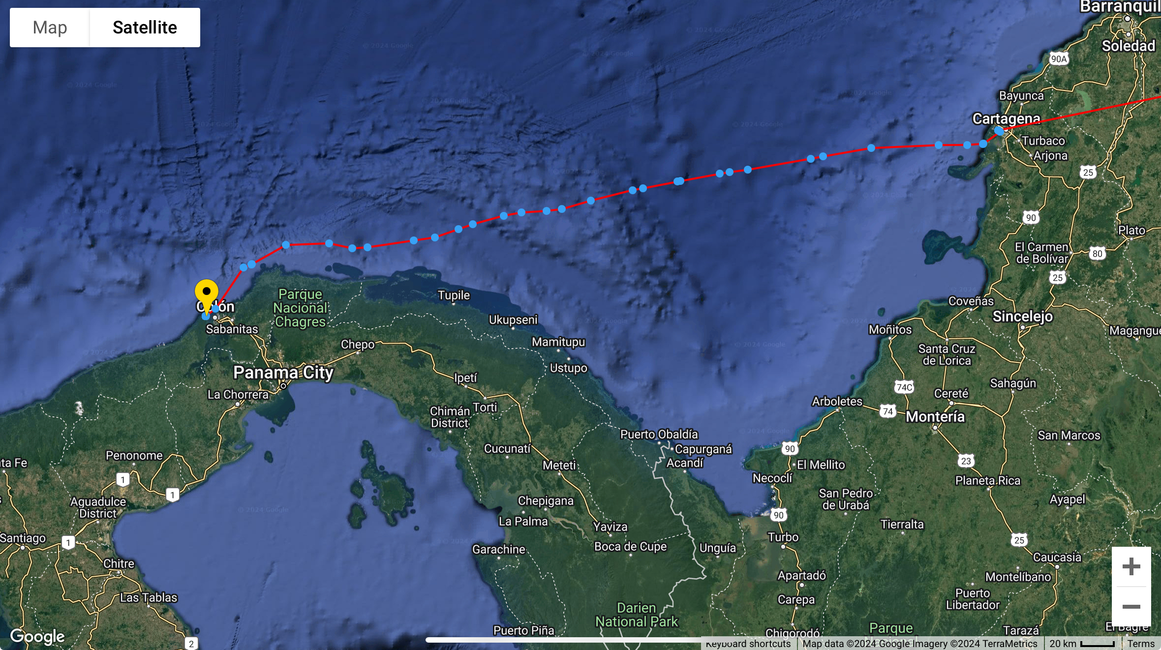 After clearing the fish farms, we resumed our course to Colón. Marina joined us around 05:00 but wasn’t ready to steer. Together, we watched the sunrise, anticipating the sight of land. iNavX estimated we’d reach Colón’s breakwater by 10;00 or 11:00.