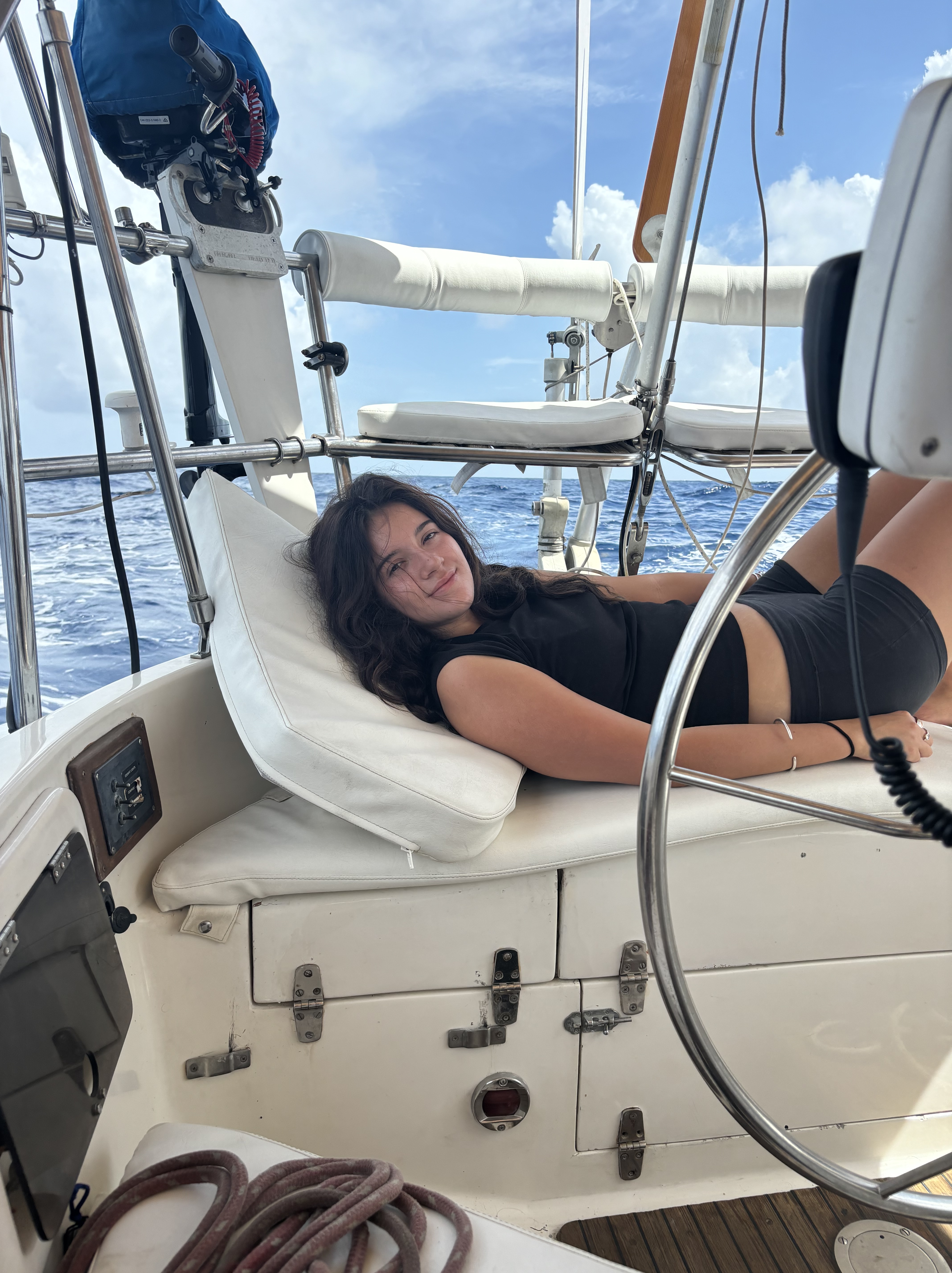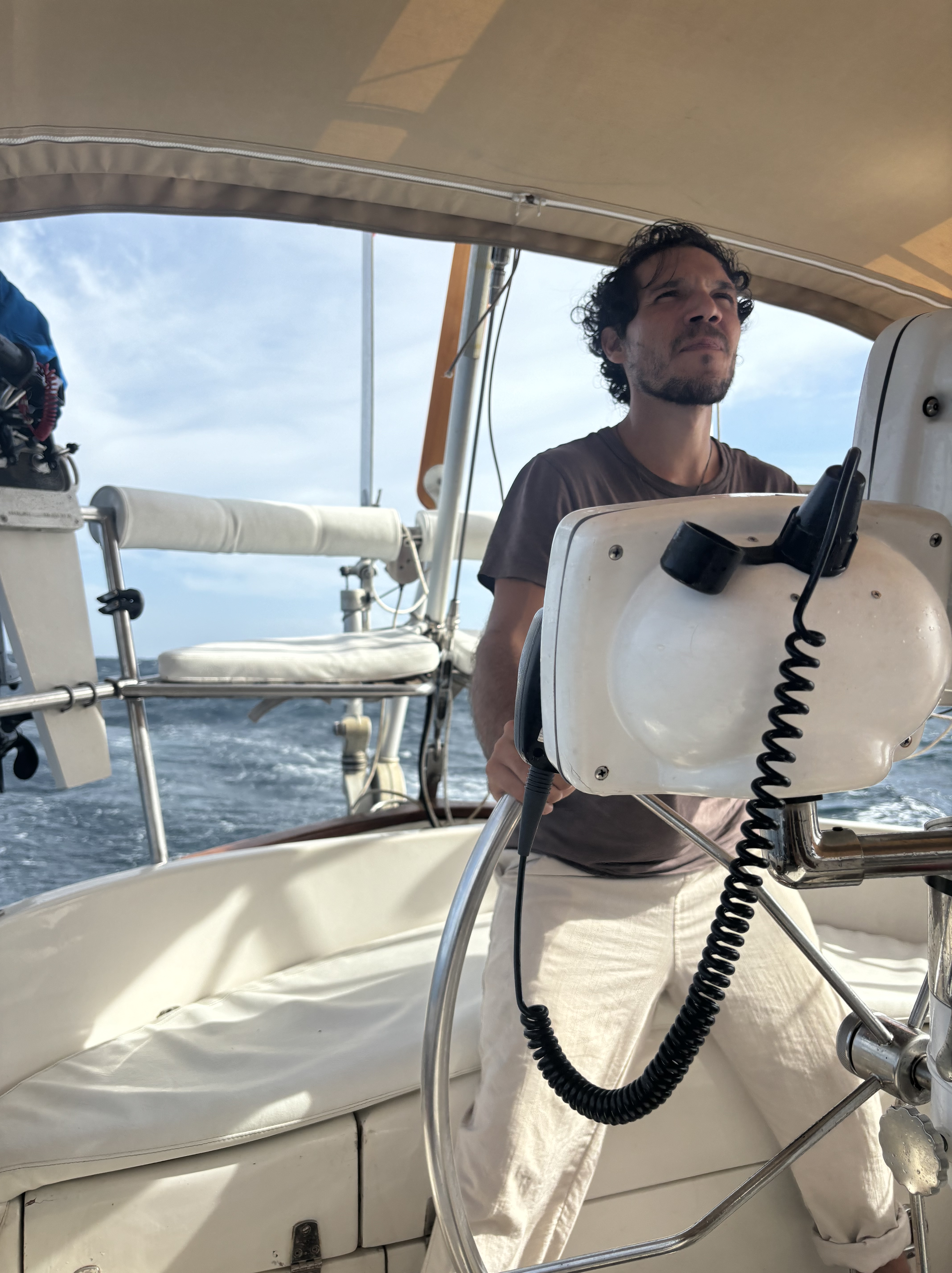 After drinks and a subdued sunset, we began steering shifts. Marina took the helm first, managing an impressive three hours before heading below to rest. Juan David stayed with her, half-asleep in the cockpit, while I managed a couple of hours’ sleep below.
