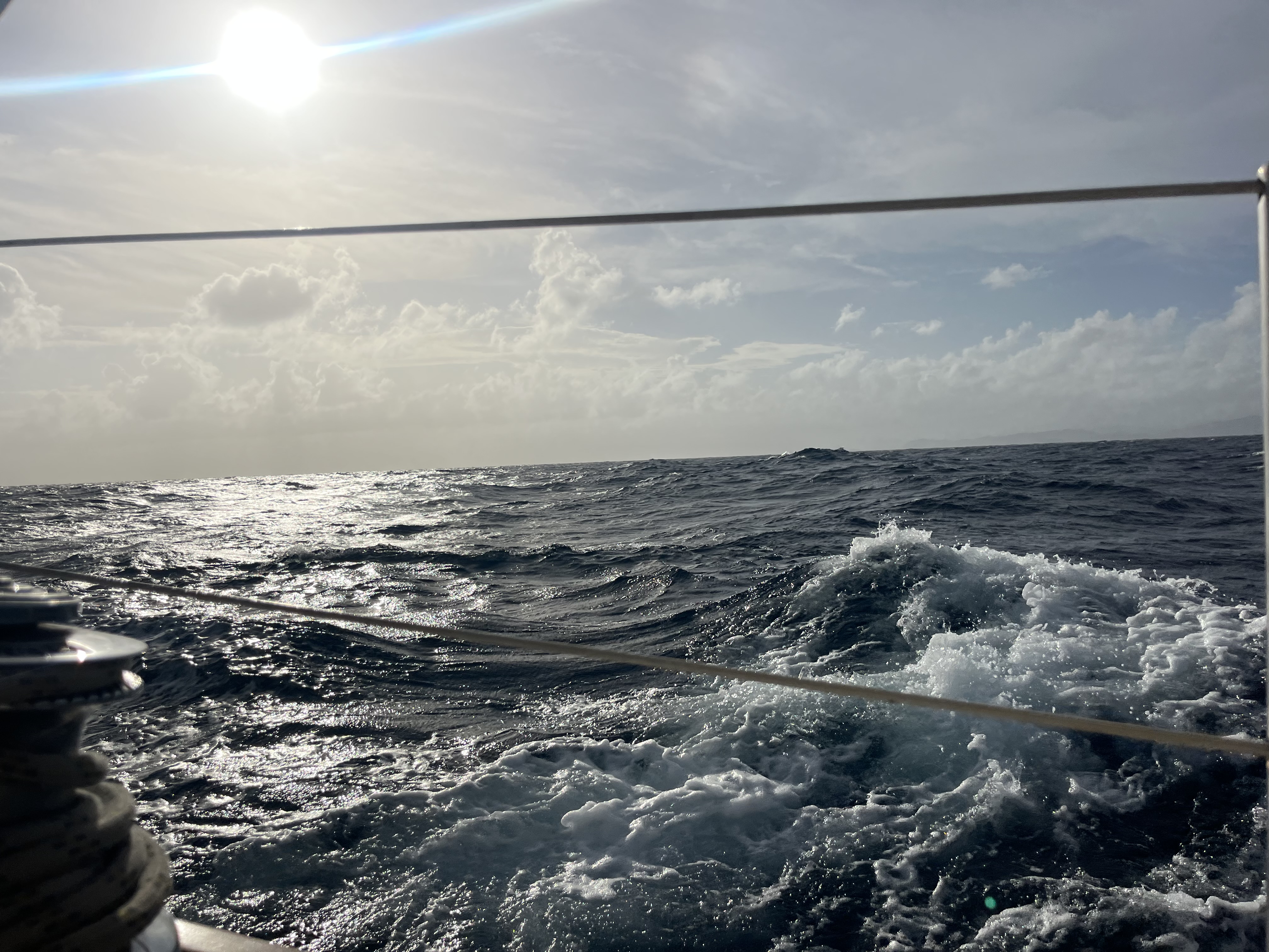 But when daylight broke, we encountered unexpectedly large waves—4 to 5 meters high (12-15 feet) which could not be explained by the local winds. Initially, I attributed them to the rapidly shallowing seafloor, but I later realized they originated from the Windward Islands, unbuffered by South America. North of Colombia winds that been blowing at 30-35Kts, gusting 40 the previous night.