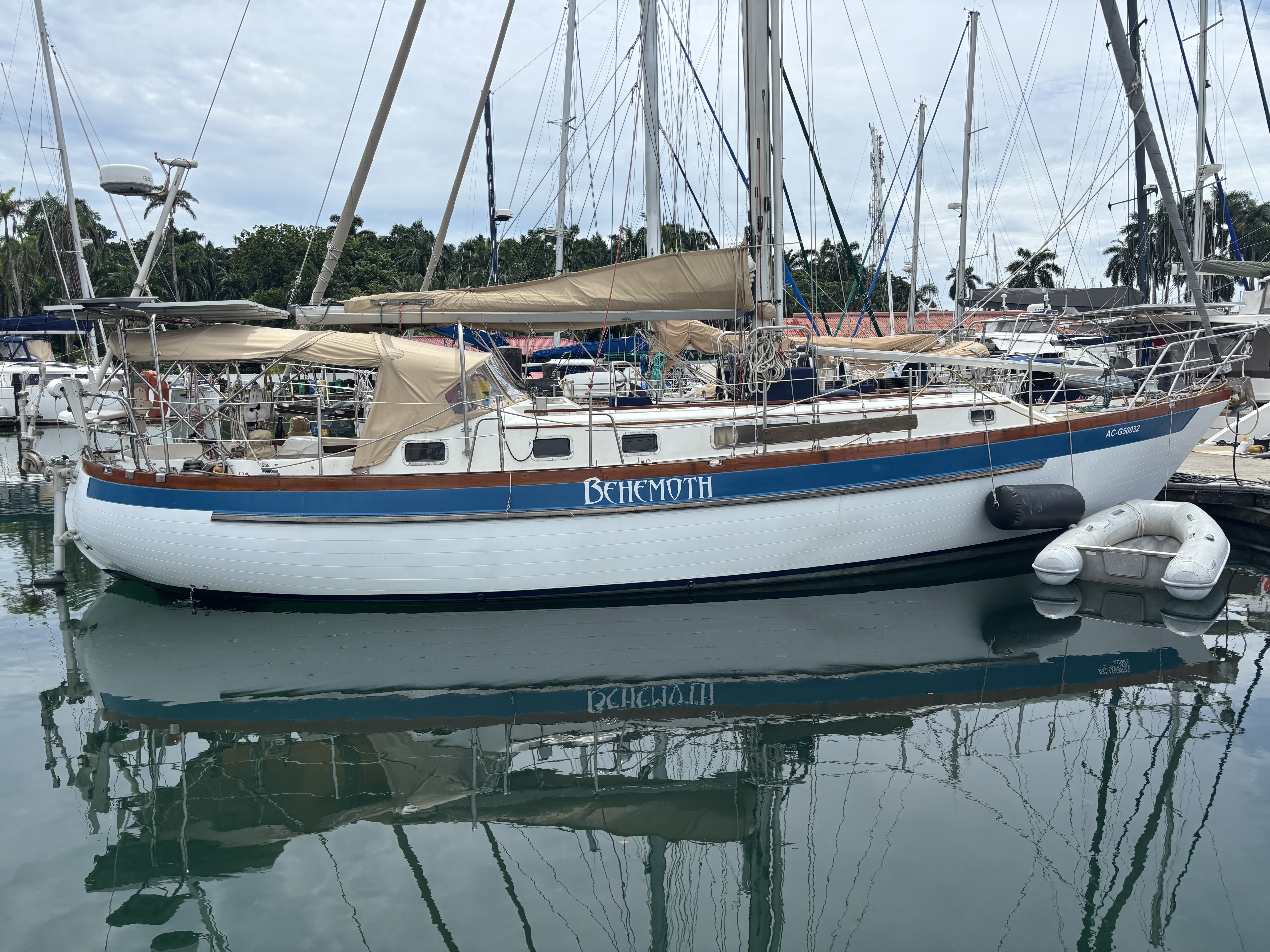 I just boarded BEHEMOTH a couple of hours ago. She needs love and care. There was supposed to be somebody here at Shelter Bay Marina, for whom I pay extra, taking care of her and, among other things, making sure she is always beautiful and elegant, but he didn’t do a good job. I’ll have to complain on Monday.