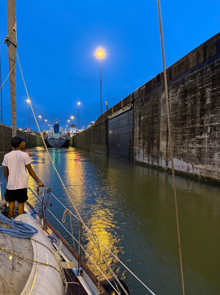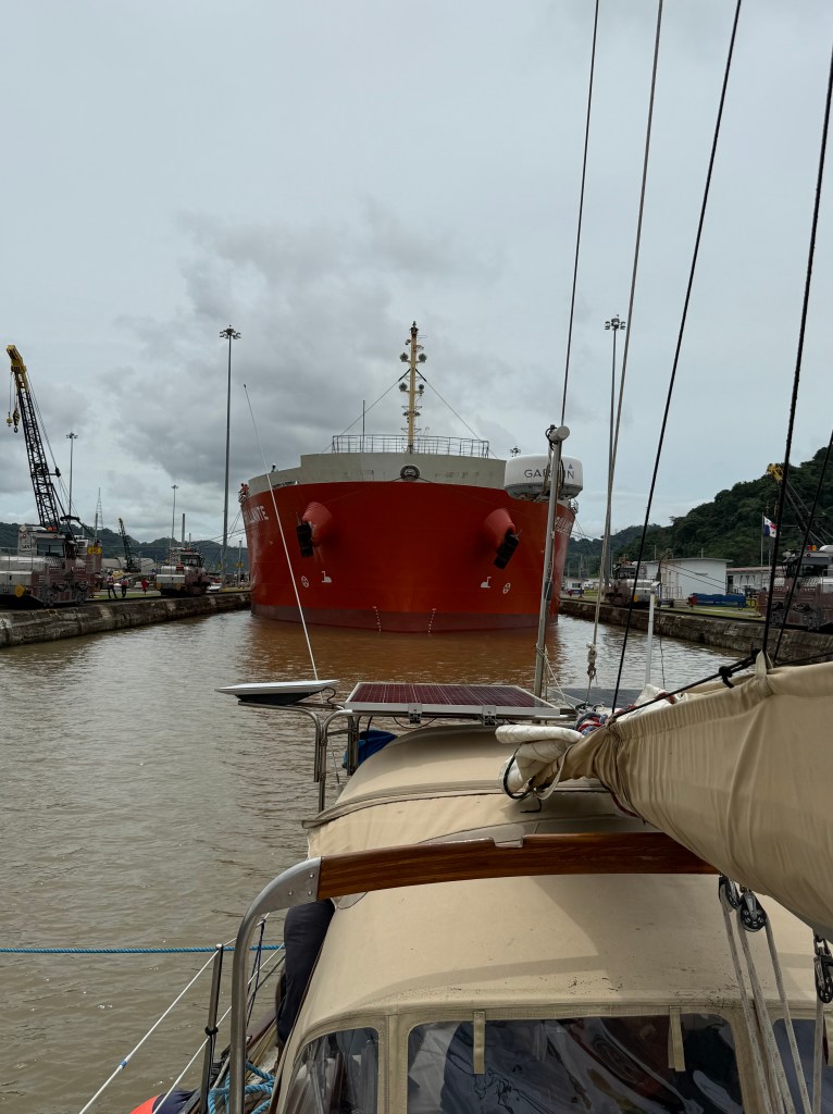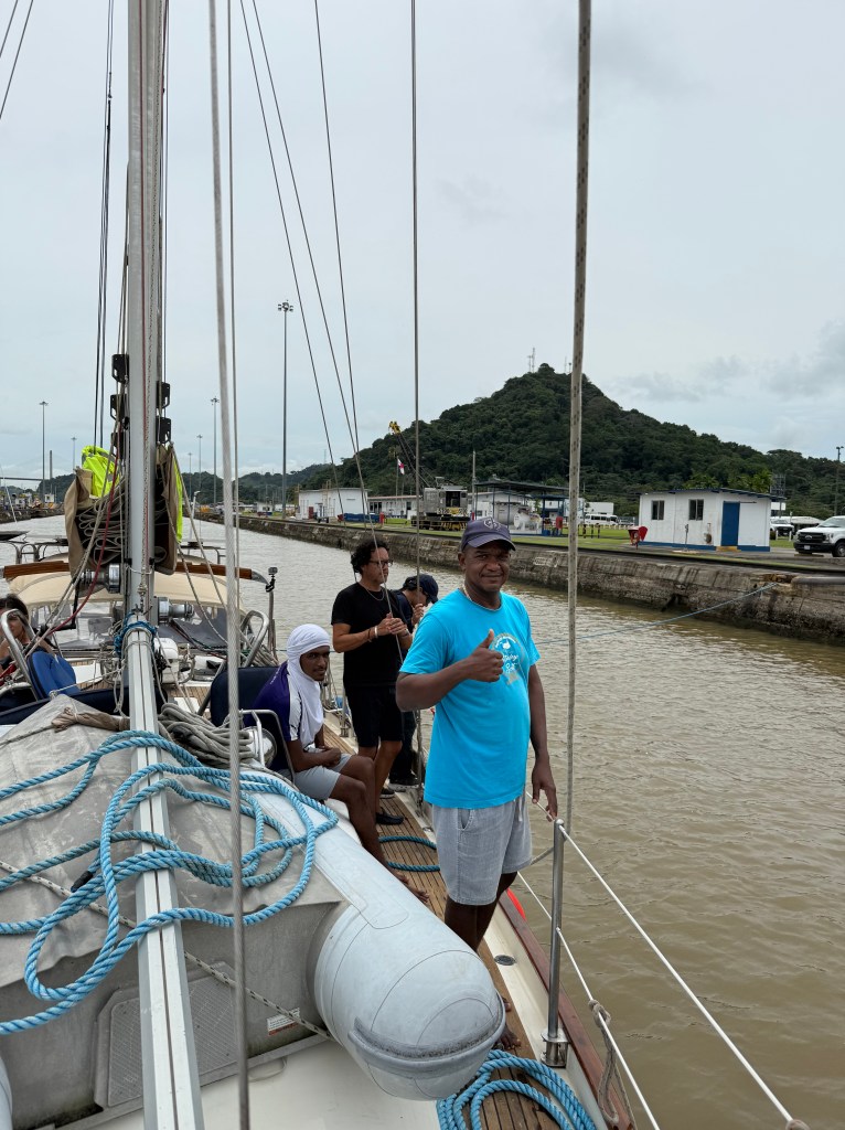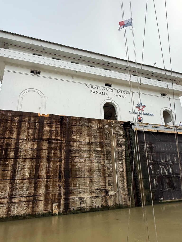 We made it across with almost no scratches but a couple of times — in the Miraflores locks — we were close to disaster because of the canal’s line handlers were not up to the task.