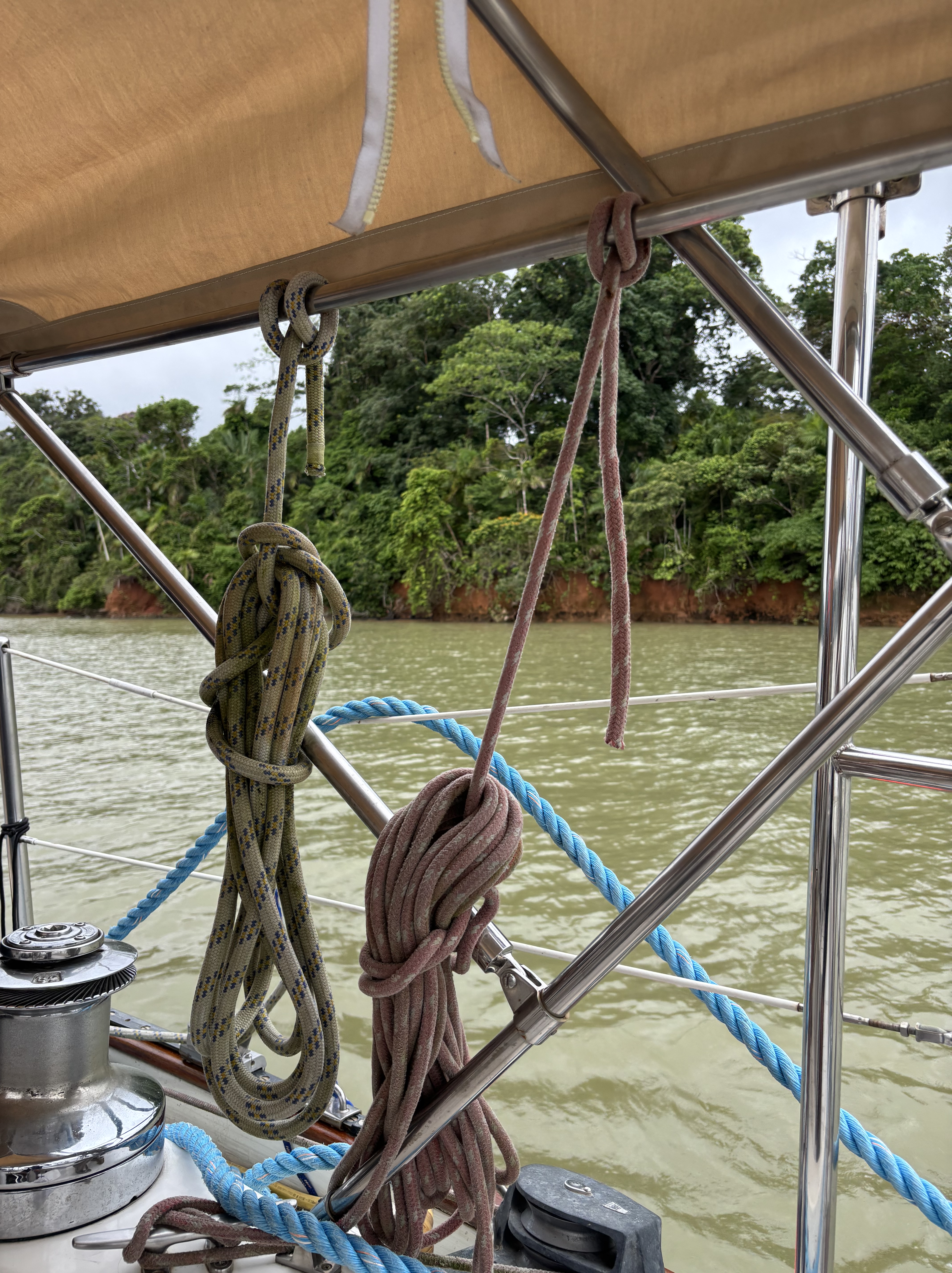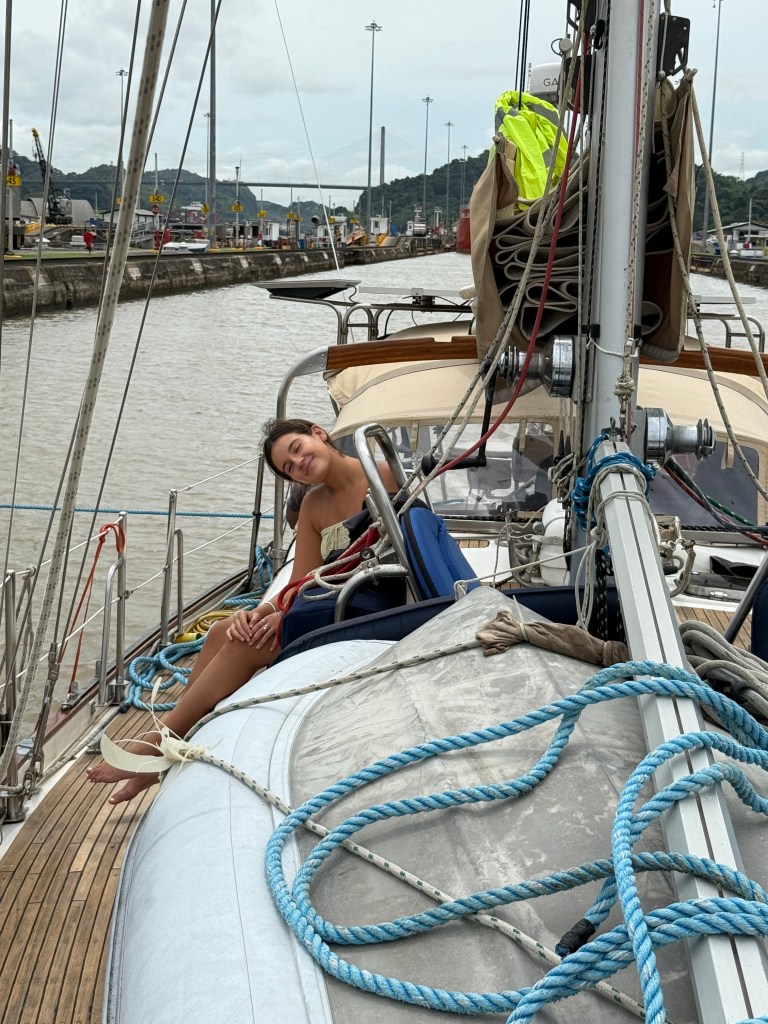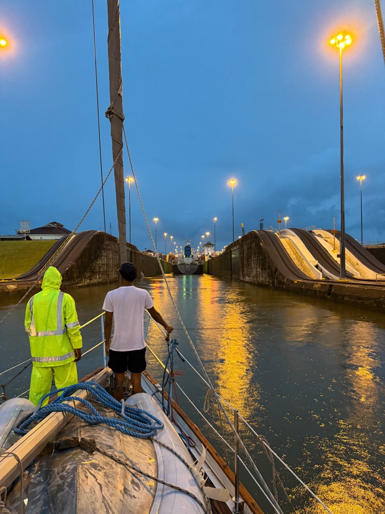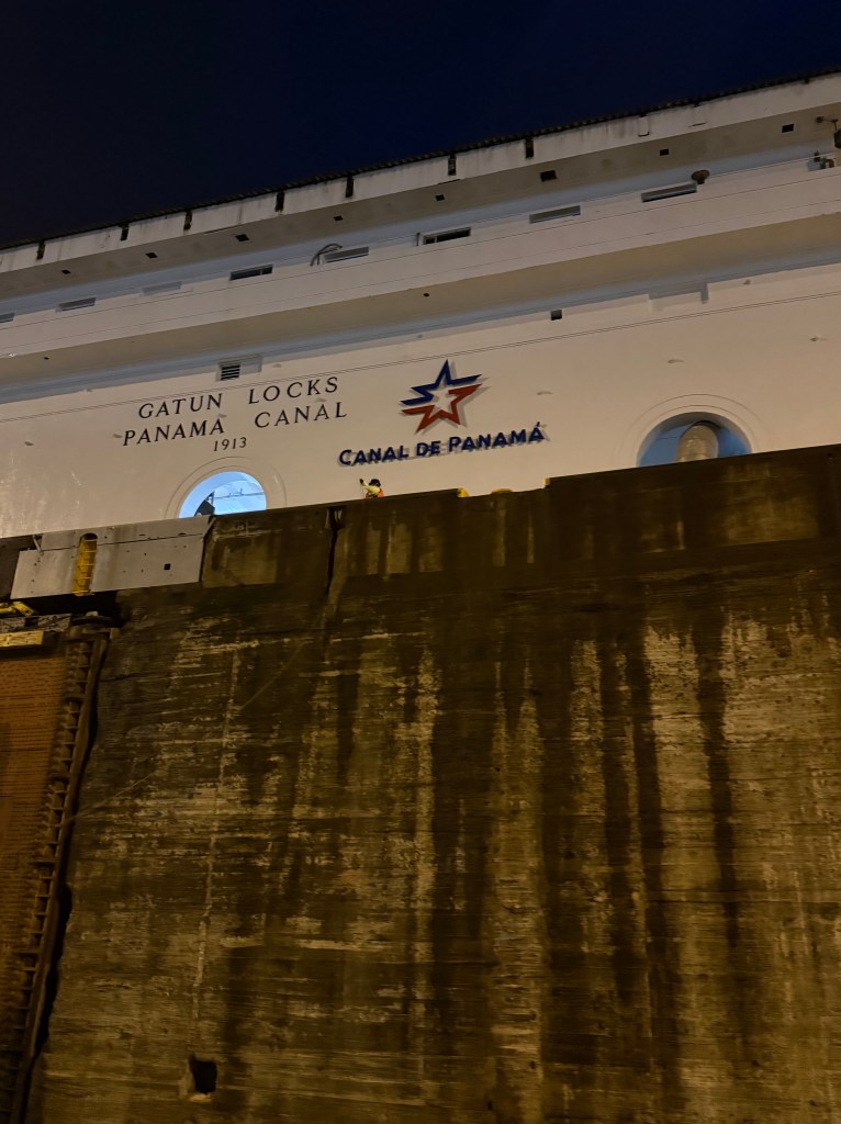 We made it across with almost no scratches but a couple of times — in the Miraflores locks — we were close to disaster because of the canal’s line handlers were not up to the task.