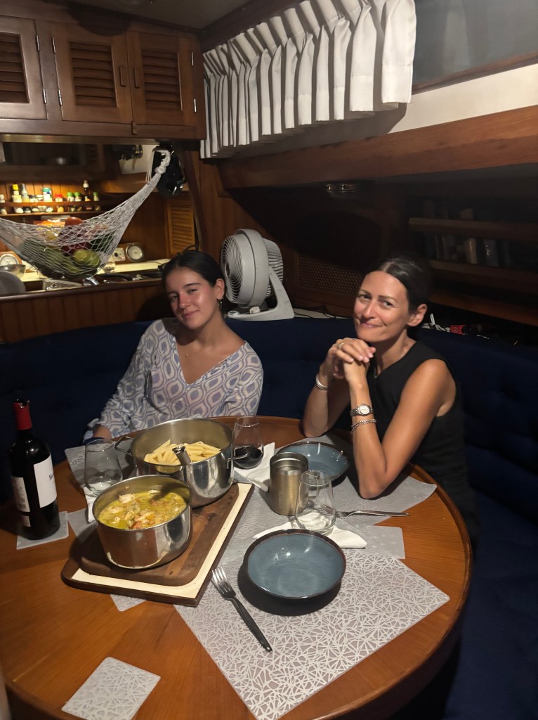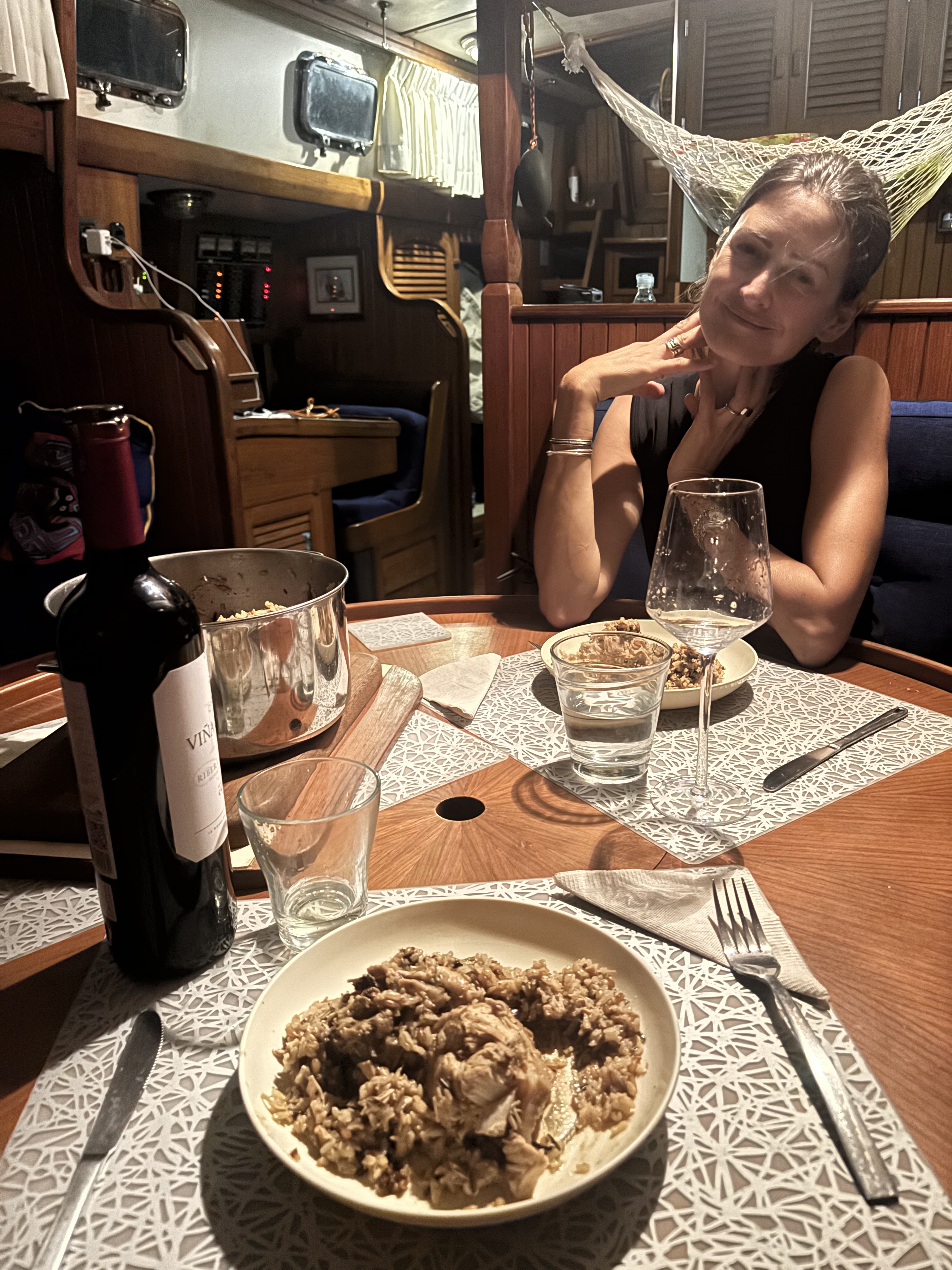 We exited the third lock at around 19:30 and motored through the canal marked with red and green flashing lights up to Isla Trinidad where we picked a mooring for the night. Natalia had prepared a delicious spanish rice for dinner that was eaten while under way. Once moored I took a quick shower and poured myself a well deserve G&T. We all went to bed at around 22:00. I told the line handlers they could sleep inside in the main cabin if they wanted to. They did and were still sleeping there when I got up at 06:00 the next morning.